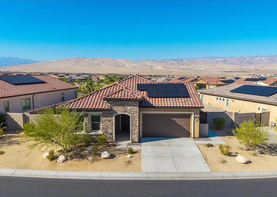 Welcome to resort-style living at its finest in the highly desirable Del Webb Rancho Mirage community. This beautifully appointed home combines elegance, functionality, and comfort, offering breathtaking panoramic mountain views that truly set it apart. Perfectly located in the heart of Rancho Mirage, the home is just minutes from premier shopping, fine dining, world-class golf, and top medical facilities, making everyday living both convenient and enjoyable. This residence features two spacious bedrooms along with a versatile den framed by French doors, ideal for a home office, library, or creative hobby space. An extended dining room and sunroom provide additional square footage and an abundance of natural light, creating warm and inviting spaces for entertaining or relaxing. The primary suite offers a peaceful retreat with a charming bay window, allowing you to enjoy serene mornings and stunning mountain vistas right from your bedroom. The chef's kitchen is the centerpiece of the home, featuring an executive island, upgraded appliances, and premium finishes designed to delight both casual cooks and culinary enthusiasts. The living room is thoughtfully designed with a built-in AV system for seamless entertainment. Throughout the home, additional upgrades such as a boot bench, floor outlet, soft water loop, gutters, and low-voltage wiring enhance comfort and convenience. Energy efficiency is at the forefront of this home's design. Owned solar panels paired with a flat-rate electricity plan deliver substantial savings, allowing you to enjoy modern living without the stress of fluctuating utility costs. Life at Del Webb Rancho Mirage is centered around an active, vibrant lifestyle. Residents enjoy exclusive access to an expansive resort-style clubhouse and state-of-the-art fitness center, along with tennis and pickleball courts, sparkling swimming pools and relaxing spas. A wide variety of social clubs, activities, and planned events provide endless opportunities to connect with neighbors and stay engaged. This is more than a home - it's a lifestyle destination. Whether you're relaxing with aglass of wine while taking in the stunning desert sunsets, or joining neighbors for afriendly pickleball match, you'll love everything Del Webb Rancho Mirage has to offer.Schedule your showing today and come see the VIEWS, the UPGRADES, and the unmatched LIFESTYLE waiting for you.