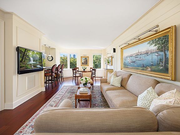 The grand living and dining room is perfectly positioned to showcase the endless expanse of Central Park—an extraordinary backdrop for both entertaining and everyday living. The open Christopher Peacock kitchen is beautifully designed with custom cabinetry and top-of-the-line appliances from Sub-Zero, Viking, and Miele. A built-in desk provides a convenient workspace, while an elegant powder room, spacious coat closet, and a large storage area beneath the staircase complete this level.