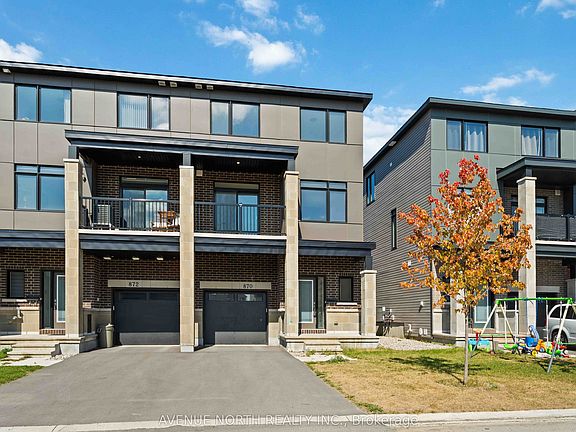 Live your luxury in this beautifully upgraded end-unit townhome, perfectly located in the heart of Bridlewood Trailsone of Ottawas most desirable west-end communities. Surrounded by top-rated schools, parks, trails, transit, and everyday amenities, this home offers the ideal setting for families, young couples, and busy professionals alike. Nearly $10,000 in premium upgrades shine throughout, including rich hardwood flooring, pot lights, and a bright open-concept layout designed for modern living. The entire home has been freshly repainted and professionally deep-cleaned, giving it a move-in ready feel. The kitchen boasts a granite island, quartz counters, stylish tile backsplash, and brand-new stainless steel appliances. Upstairs, the spacious primary bedroom features a walk-in closet and an upgraded ensuite with a modern vanity, new sink, faucets, and cabinetry, while the second bedroom offers flexibility as a nursery, guest room, or office. With two and a half bathrooms, a private balcony, an attached one-car garage, and the added privacy and curb appeal of a premium end-unit, Home is vacant and Move-in ready and thoughtfully designed, this home combines convenience, space, and lifestyle features you will enjoy. Photo's are virtually staged.