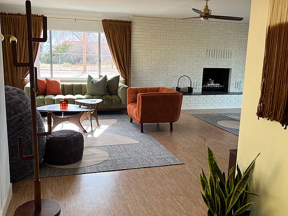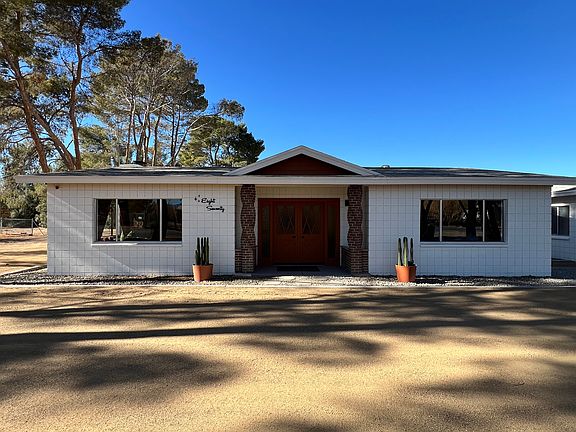 Furnished 1970's mid century ranch style home conveniently located within an hour of Death Valley National Park and Las Vegas. Fully remodeled home sits on over an acre and half and is surrounded by large pine trees, bamboo and desert landscaping. Local plant nursery within walking distance.
