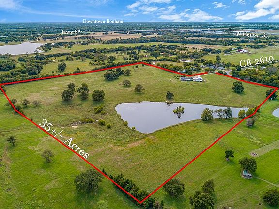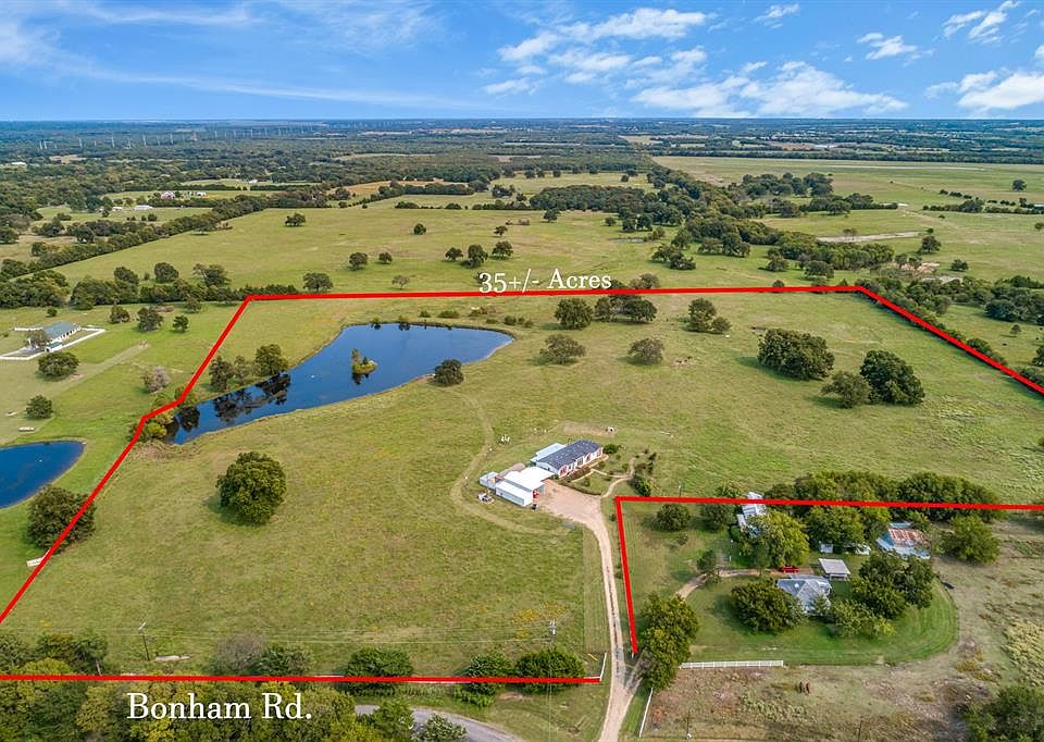 Lovely custom 4 bedroom home with a beautiful view of rolling landscape, with the future Lake Bois D'Arc just over the rise, 5 minutes from Lake Bonham, and 5 minutes from downtown. Property has its own private stocked 4 acre lake where Canadian geese visit; Flowered covered large deck overlooks this stunning view. Outbuildings, covered carport and RV or boat covered carport all come with electric and lighting as well as greenhouse with flooring for the individual with a green thumb. Rocked walkways to outbuildings. Lovely well thought out home with many commodities and beauty. A wonderful place to raise a family, livestock, and experience country life. Come and see!