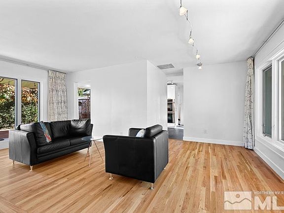 A true southwest Reno gem; a 1955 ranch-style with modern updates. As you enter through the front door, you are greeted by the gleaming hardwood floors and warmed by the light streaming in through the many windows. The main living area is cozy the perfect spot to sit and enjoy the fireplace and the views of both the front and back yards. Step into the kitchen and you will find the hub of this lovely home., The exquisite remodel includes Miele double ovens, a Miele steam oven, dual dishwashers, custom cabinetry and gas cooktop. The dining area is spacious and your dinner guests will love the view of the back yard through the 4-panel sliding doors. Also on this side of the home you find a bonus room complete with cork flooring and storage space the laundry and a full bath with walk-in shower. The bedrooms are located on the other side of the home and the bathroom on that side has a large tub and heated shower wall. The secondary bedroom is perfect for a multi-use space with the murphy-bed and storage. The original third bedroom could easily be re-created with the addition of a wall. Great care was taken when developing the outside space. The landscaping is professionally designed and special attention was taken to cultivate a yard that is low maintenance, water efficient and pollinator habitat friendly. The huge, raised bed hoop house makes it easy to grow fresh produce year-round; the chicken coop and shed stay with the sale of the home. The back side of the property has access from Ferris Lane and features a detached oversized two car garage with custom woodworking bench and lofted bonus space. The loft space is fully conditioned by a mini-split system and has a built-in kitchenette, sink and refrigerator as well as built in couch seating. There is an owned solar system and Tesla Powerwall. Charge your eclectic vehicle at one of the three electric car charging stations This house is truly for the those who want to live “off-grid” with all the “on-grid” amenities our fast-paced world has to offer. Check the “D” tab for a full list of features.