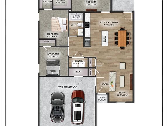 Efficient single-level livingAttached two-car garageDedicated laundry roomModern designPrivate primary suiteClear sightlinesLarge island