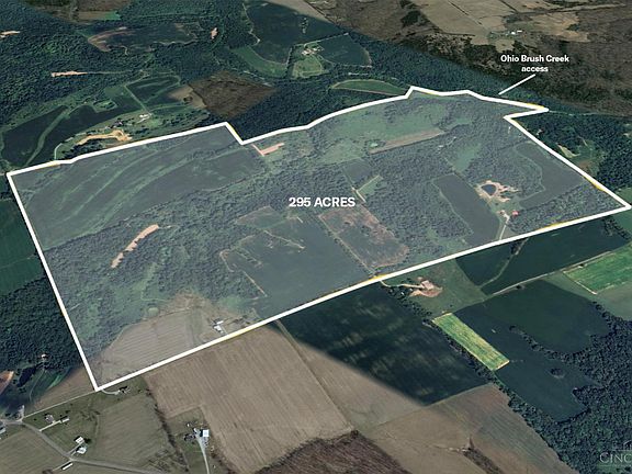 ONE OF A KIND Hunter's paradise on over 295 acres in Adams County! This property offers 73.5 acres tillable, 40+ acres of established food plots (clover, alfalfa, CRP grasses, and wildflowers), and 3 ponds. Known for producing mature bucks, it also includes Ohio Brush Creek access. The 2 bed, 2 bath cabin has been recently renovated and is supported by multiple pole barns: a 32x32 barn with hunting room, laundry, and full bath; a 70x37 barn with 5'' concrete slab, new roof and doors; and an additional 40x66 two-tier barn plus grain silo. Property is fully set up for hunting and recreation with easy access to SR 32.