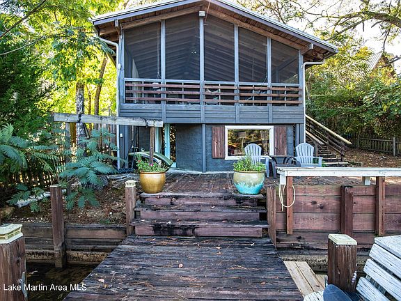 A true Lake Martin Cabin! Gently sloped and almost completely flat lot down to the water. The home features a full sized boat house, screened porch overlooking the waters edge, carport, boat slip, and comes mostly furnished! Located in a protective cove right off the main water way, enjoy the wide, private cove for swimming and all manners of lake activity. Located in Coosa county, enjoy quick access to waterfront attractions such as The Landing at Parker Creek, Willow Point, Real Island Full-Service Marina, and more! There are not many more like this left on Lake Martin. Call your Lake Martin agent of choice to set up your private showing!