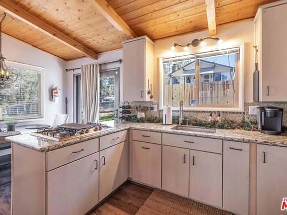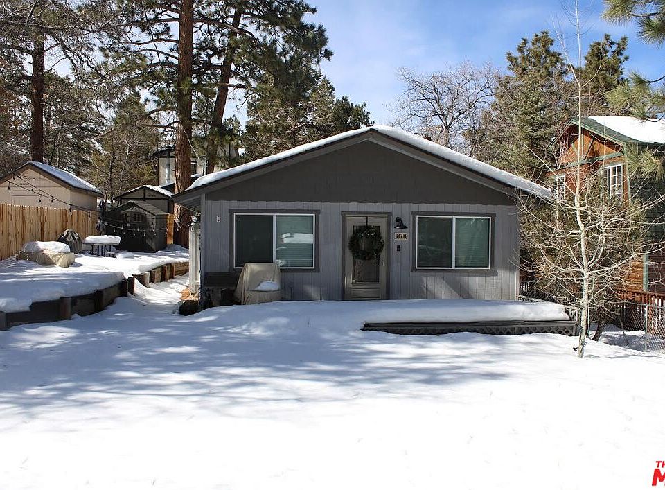 Unlike most of the houses in this area, this one has been completely reimagined and updated with dreamy finishes throughout. All of the beautiful furniture including the beds, dishes, refrigerator, snowblower, fire-pit, sofa bed recliner and tools with the exception of the 70 inch TV are included in the sale. The chef's kitchen features granite counter tops and designer hanging lights. An en suite bath has been added by the owners as well as new flooring throughout the cabin. The guest bath features a jacuzzi tub, there is a security system installed and French doors open to the back yard area. The property is in turn key condition with added perks like stylish decor and modern features throughout. This is a short sale and the final price is contingent on lender's approval.