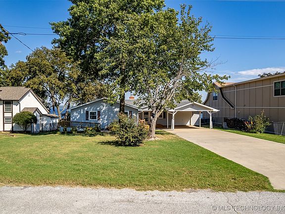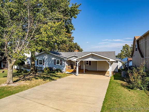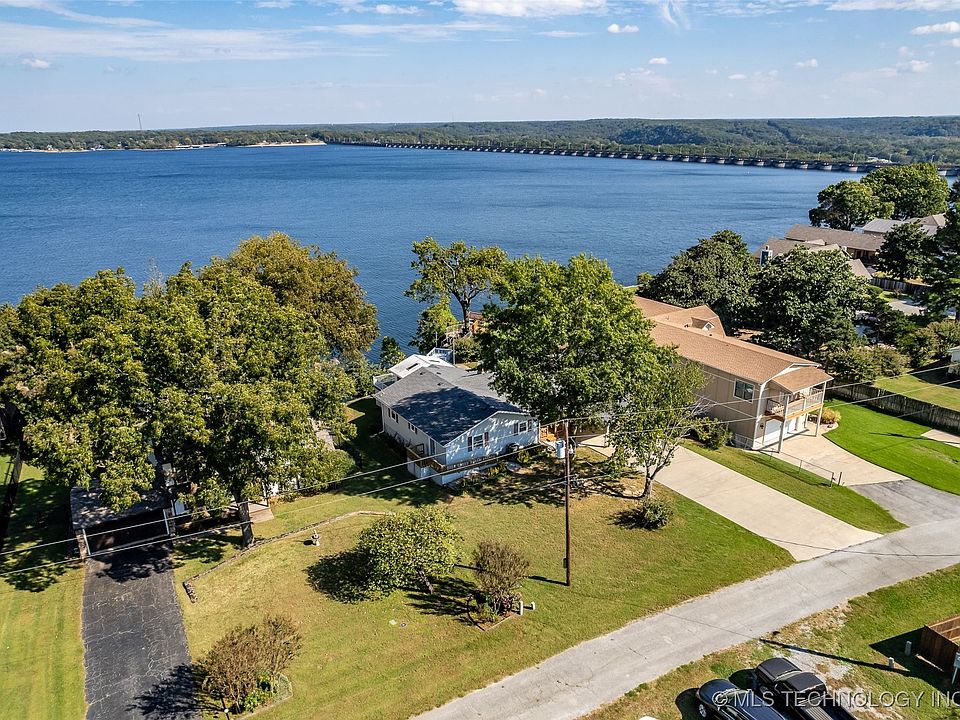Lovely Langley Bluff Ranch just 5 minutes from Reasors and one hour from Tulsa! This well-maintained lake home has beautiful views of the main lake and the one-mile long dam. The two bedroom, two bath, home has been updated with granite and stainless appliances, fresh paint on the interior, laminate and tile flooring, one-car garage, two-car attached carport covered front porch with Trex, perfect to watch the sunset and a lovely deck surrounding the sunroom overlooking Grand Lake and the eagles soaring at its finest. There is a detached storage building for your garden tools, small storm shelter in the crawl, garage has great storage and floored attic above, and a work area. The sellers added the lovely sunroom which has not been added to the square footage of the home. The roof is 5 years old and the HVAC has been replaced as well as all the plumbing. Come enjoy this great home with wonderful views of Grand Lake!