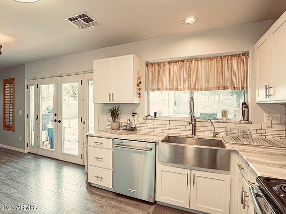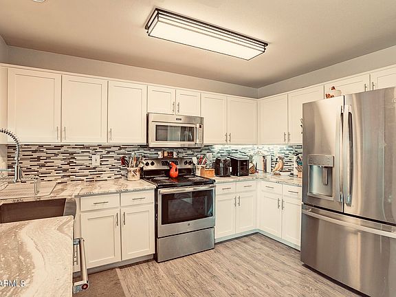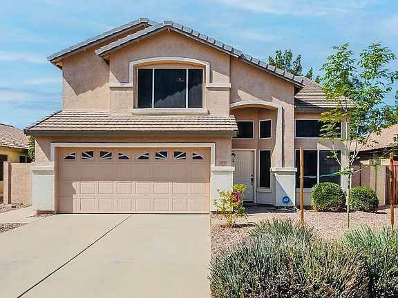 10K UNDER COMPS! Check out the size of this lot compared to others at this price point! Wide open floorplan when you walk in, with tons of flex space on the lower level as well as a loft space upstairs. Upgraded kitchen (w/waterfall granite and farmhouse sink!) that opens directly to a great room and ½ bath-perfect for guests. Newer AC, soft water, and extra AC in the master for COOL nights! Home has neutral solid surface floors (up/downstairs) with minimal carpet. Backyard is ready for entertaining with extended patio, hot tub, & a gated dog run on the side (with dog door access to family room!) Home is on a quiet cul-de-sac and is PERFECTLY located in Gilbert to many stores, amenities and local elementary and high school. Don't miss this one – going to go fast with the HUGE price reduct