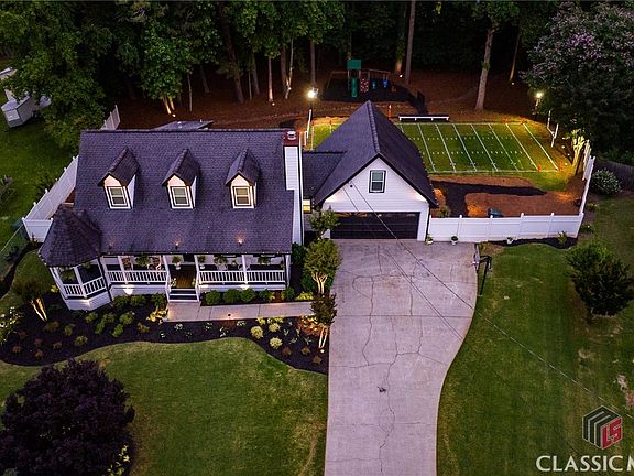 Welcome home to this NEWLY RENOVATED house on a cul-de-sac lot with No HOA! This single-owner home has new flooring throughout, new granite countertops, new interior paint, new light fixtures, new hardware, the list goes on & on. The wrap-around front porch with gazebo is the perfect spot for rocking chairs and creates an inviting entrance into the home. Good sized family room includes a wood burning fireplace and has open sight lines to the dinning area & kitchen. The kitchen provides tons of storage & meal prep area on beautiful new granite countertops accented by a new white subway tile backsplash & stainless-steel appliances. There is a half bath & laundry closet off of the garage to create a convenient drop-zone. The large primary bedroom is located on the main floor highlighted by new luxury vinyl plank flooring & spacious en suite bath that has a soaking tub, separate shower, tons of countertop space. Upstairs there are two large guest bedrooms with new carpet and shared bathroom in between. Over the garage there is a large 4th bedroom with its own staircase that would be perfect for a home office, man cave, or bedroom for a teenager! The star of the show is the outdoor living options this large, private, 1-acre lot features. Backyard offers a 22x30 foot tiered deck perfect for entertaining and has a shaded kids playground area. Enjoy cozy evenings by the fire pit or let your kids' imaginations run wild with their very own mini football field with goal posts & outdoor lighting. Home has beautiful landscaping throughout with a 4-zone irrigation system & amazing 50+ outdoor lighting system in both the front & backyards that adds beauty to the thoughtful landscape design and provides extra sense of security. With Highway 316 less than 5 minutes away, commuting to Athens or Atlanta is smooth. Conveniently located near schools, Gwinnet County parks, library, and shopping. Don't miss out on this move-in ready home! Open House Sunday, June 8th 2-4pm. Use our preferred lender, Laci Gabriel, with the Steadfast team for a $1,000 towards closing cost paid by lender.