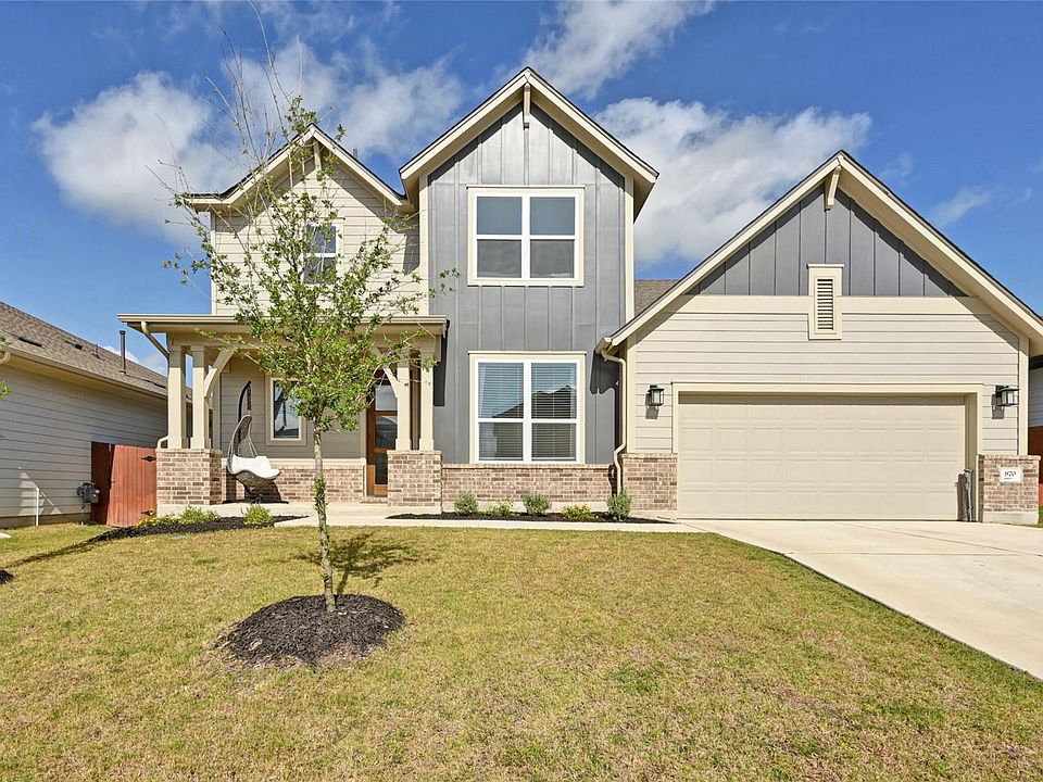 Step into the thoughtful design and award-winning craftsmanship of this David Weekley-built home, where quality and comfort meet. With just under 2,400 square feet, this 3-bedroom, 2.5-bathroom home offers timeless appeal and modern upgrades throughout. The spacious first floor boasts soaring ceilings and an open layout ideal for everyday living and entertaining. A dedicated office with French doors offers a quiet space to work or study. The downstairs primary suite features a spa-like bath with an extended walk-in shower, soaking tub, and dual vanity. Upstairs includes two additional bedrooms, a versatile loft for a second living area or home office, and multiple linen closets for storage. In the heart of the home, the kitchen features white cabinetry, granite countertops, decorative tile backsplash, stainless steel appliances, and pendant lighting. The adjacent dining area includes a built-in banquet and large windows that fill the space with natural light. Wrought iron sloping stairs, under-stair storage, and decorative tile in the bathrooms and laundry room add extra charm. The exterior offers a craftsman-style look, covered patio, and a landscaped backyard with no immediate rear neighbors—perfect for enjoying peaceful views with low-maintenance upkeep. Located in the desirable Sunfield community, residents enjoy access to dual lazy rivers, a junior Olympic pool, fishing ponds, outdoor pavilions, and year-round events that bring neighbors together. With close proximity to IH-35 and Toll Road 130, you’ll enjoy the tranquility of the suburbs with quick access to city conveniences. This is more than just a house—it’s a David Weekley home in Sunfield, built for comfort, energy efficiency, and lasting livability. Home Sweet Home!
