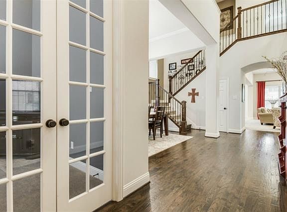 Highland Home.Mud room with outlets in each cubby.Surround sound speakers in family rm and patio,built in workstation upstairs,LED exterior uplights,2 and half car garage,extd driveway allows for extra parking,custom stone and brick edging,gate in bkyard gives access to walking trail behind house,door in garage leads to bkyard,laundry connects to mstr closet,extd Mstr BR option,gas bib on patio,speakers in garage,patio wired for TV and speakers.