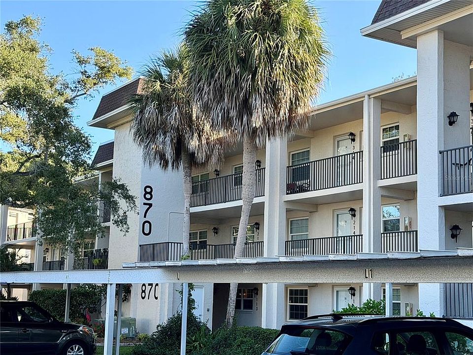 This lovely well cared for two bedroom, one bath condo has many extra features for you to enjoy. Located on the 3rd floor, this unit, gives you maximum privacy as you enjoy your morning coffee on the screened in rear lanai. The kitchen is updated and features stainless steel appliances. The open concept of the living room/dining area has lots of light facing trees, providing privacy while on your balcony. Newer hurricane windows and doors throughout the unit. The bathroom is also updated. Walk or ride your bike the short distance to downtown Dunedin and experience the vibrant atmosphere for the farmers market or one of the many festivals and events. Stroll through our quaint shops, top-rated restaurants, breweries, waterfront parks, and the famous Pinellas Trail. You are also a short distance to TD ballpark to catch a game. The unit is move-in ready and awaits your part-time or full-time occupancy in Delightful Dunedin. The HVAC system was replace in 2023, HW Heater is 2015 and the electrical panel was updated in 2017, Cats are welcome. Buyer will have documentation for service dogs and must be approved by the association. Patrician Oaks is a 55+ community featuring a heated pool, clubhouse with fitness equipment, shuffleboard, lush tropical landscaping that is the perfect blend of convenience and charm in this beautifully maintained 2 bedroom, one bath condo. Come and enjoy the ease of living in the Patrician Oaks Community. The covered assigned parking space C1 has easy access to the elevator. The open floor plan allows for a seamless flow between the living room, dining area, and kitchen, perfect for entertaining family and friends the building courtyard makes for a great gathering location to catch up with neighbors and enjoy the tranquil views of the landscaped grounds and relax and share your adventures of the day. The unit is being sold furnished for the convenience of the seller. Come see this unit today!