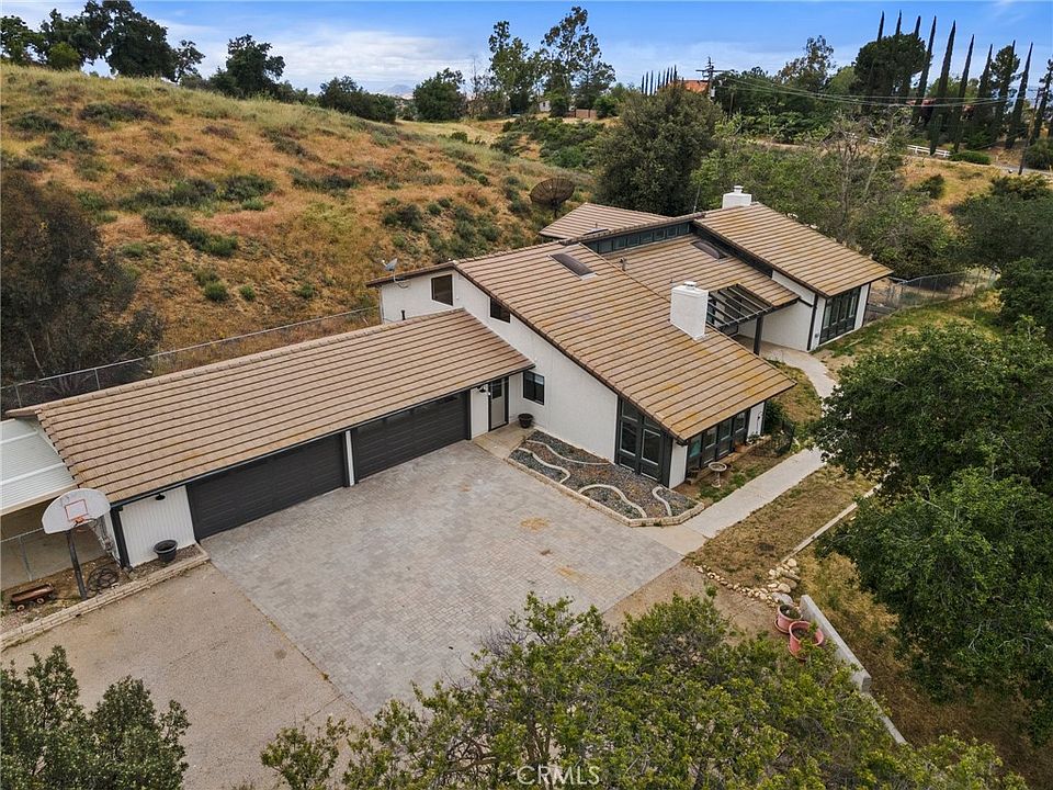 BACK ON THE MARKET BUYER COULD NOT PERFORM! Fabulous 3600 sq ft Ranch home nestled on the top of nearly 8 acres of prime horse property. Fantastic Views!!! From the moment you drive through the double stone column entrance you will be transformed by the natural beauty of this special home. Mature oak trees provide shade and beauty to the horse pastures and 5 stall barn. There is a wonderful seasonal creek that runs through the property. (The owners have spotted several deer at the creek) The private driveway crosses the creek and winds up to a spectacular 3600 sq ft split level home. High vaulted ceilings greet you upon entering the front door and natural sunlight flows through the skylights and abundant windows. New stainless steel appliances set off the galley kitchen . Beautiful new laminate floors flow throughout the home. The home has been painted inside and outwit wonderful designer tones. 3 car garage This is truly a one of a kind property and is located in the beautiful rural area of upper Calimesa.