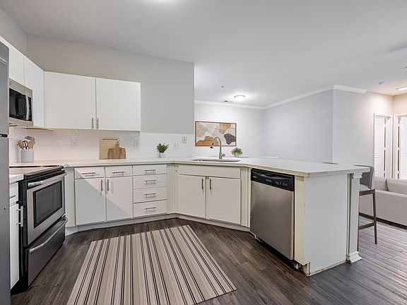 - Exterior features: 9' ceilings, Business Center, Car wash & detail center, Carports & garages available, Fenced-in backyards in select apartment homes, Hammock area, Media Room, Pet Park, Pet grooming station, Poolside grills, Smart lock entry, Smart thermostats, TV Lounge, Tile backsplash in select apartment homes, Upgraded fixtures in select apartment homes