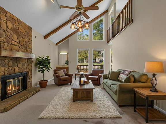 Thoughtful layoutBeamed ceilingsHardwood floorsVaulted family roomFloor-to-ceiling windowsSpacious primary suiteMasonry fireplace