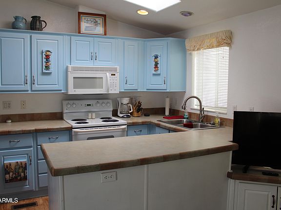 This meticulously maintained home is truly move in ready! Featuring 2 bed, 1.5 baths w/ Arizona room, this home offers comfort, style & plenty of space for guests complete w/ a Hide-A-Bed. Step into a bright & airy living room w/ an open floor plan, vaulted ceilings & skylights. The beautiful kitchen comes equipped w/ a dishwasher & ample cabinet space, perfect for all your cooking & storage needs. The primary bedroom is generously sized w/ double closets & the guest bedroom is equally inviting. The Arizona room features a half bathroom, extra fridge & freezer great for entertaining or relaxing. Enjoy the outdoors w/ a covered patio for shade, furnishings and sunscreens are also part of the package. Golf cart is included (will need new batteries). Roof recoated in 2023, AC updated in 2016 Located in the highly desirable Viewpoint 55+ Resort Community, you'll enjoy access to: 2 golf courses, 4 pools & spas, Workout facilities, Pickleball, tennis, and baseball, Fat Willy's restaurant and more! Don't miss out on this beautiful home in one of the East Valley's most vibrant active 55+communities!