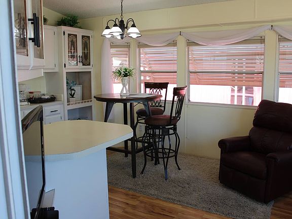 Come check out this gorgeous home that shows pride of ownership and turn key ready just for you! Step into this spacious one bed one bath with natural light that floods throughout the room, creating a warm and inviting atmosphere. Nice size open kitchen has an effortless flow between dining and living space, also has a built-in microwave with plenty of cabinet and storage space. Large bedroom with a lot of closet space. Furnishing Included, enjoy all the amenities such as the restaurant, beauty salon, pools, spa, shuffleboard, fitness center, golf course, tennis courts, game room, card room, dance room, post office, RV Storage and so much more! Must be approved by the park.