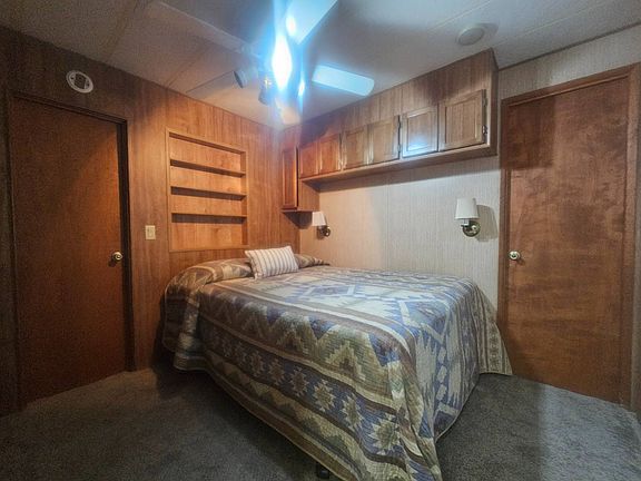 This spacious golf course home features a large 1 bedroom, 1 bathroom layout with an expansive Arizona room that includes office space. The kitchen and dining area are generously sized, and the updated bathroom boasts a walk-in tiled shower. With ample cabinets and closets, storage is abundant throughout the home. Enjoy the sunny front composite deck, shady deck space, and patio overlooking the golf course. This home is furnished as seen, including the golf cart. Additional features include a 2-car tandem carport, a storage shed/laundry room, fruit trees, and a privacy hedge, making this an affordable golf course property. Located in the Viewpoint Golf Resort 55+ community, residents can enjoy numerous amenities such as two golf courses, four pools, pickleball, tennis, softball, live entertainment, and over 200 clubs.