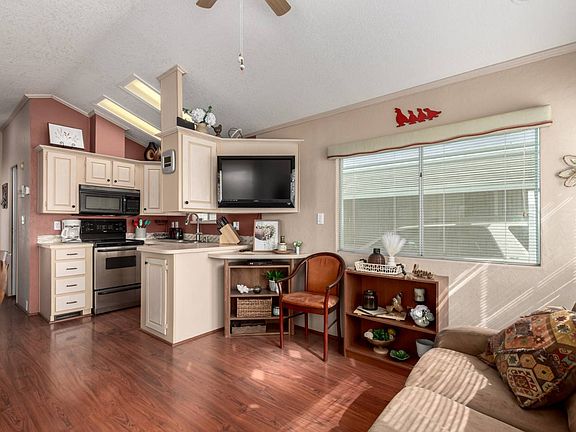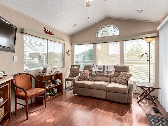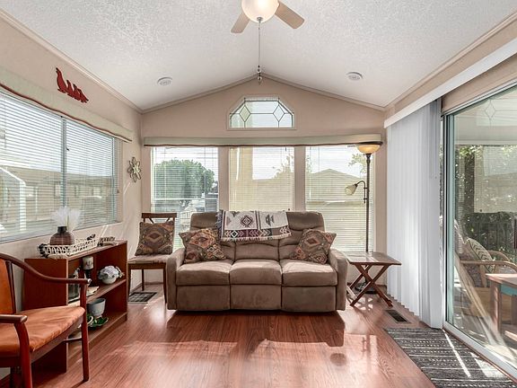 Your gorgeous fully furnished cozy home is a 2 bedroom, 1 bath home ready for move in. One bedroom is located in the separate casita along side of a partially enclosed covered sun room. Oversized patio on side of the home to enjoy playing cards or just sitting outdoors to talk with your family and friends. This home has a golf cart included in the sale to make this truly a home where you just need to bring your tooth brush. Viewpoint Golf Resort is highly rated for its abundant amenities that has 4 swimming pools, 7 spas, 3 saunas, 6 tennis courts and 16 pickleball courts, 1,500 seat ballroom, slow pitch ball park and 2 golf courses. You won't be disappointed to see this well maintained home.