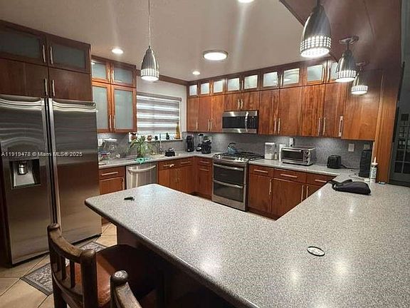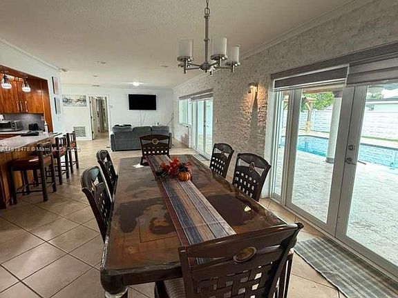 Courtesy of The MVMNT Group LLC Welcome this spacious and elegant residence offering the perfect blend of comfort, style, and convenience in one of Miami's most sought-after neighborhoods. This expansive home boasts 4 bedrooms and 3 full bathrooms, designed with both entertaining and everyday living in mind. The open-concept layout flows seamlessly from the modern kitchen to the generous living and dining spaces, creating an inviting atmosphere for family and guests alike. Step outside and experience true resort-style living with a breathtaking infinity pool, perfect for relaxing weekends or hosting unforgettable gatherings. The property also features a state-of-the-art camera security system and a gas-powered generator to keep the home running smoothly during any power outages.