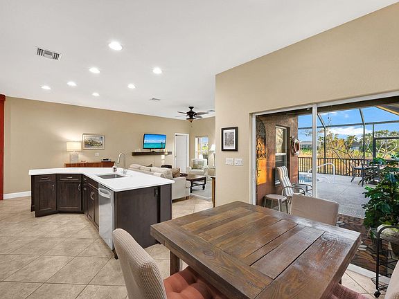 **OWNER FINANCING AVAILABLE** Welcome to 8701 Banyan Bay Rd. This beautiful 3 bedroom + Den, 2 bathroom, 2 car garage pool home is located in gated Banyan Bay with low HOA Fees and minutes from beaches, shopping, restaurants and much more. Through the front door you are greeted with the neutral color palette and large 18" tile on the diagonal leading you through the main living areas. Entertaining is a breeze in this open living/kitchen area with large kitchen Island for extra storage and counter space or take your dinner party to the formal dining room. The kitchen was beautifully upgraded in 2023 including new two-tone kitchen cabinets, quartz counter tops, fridge/freezer, dishwasher and stunning tile backsplash. Additional 2023 improvements include new carpet in the bedrooms, new water heater and a new roof. The primary suite offers ample space, walk-in closet and ensuite bath featuring dual sinks and large slate tile walk-in shower. 2 additional bedrooms, den with barn style door and 2nd bath provide plenty of space for family and friends. Outdoors you can enjoy SWFL living at its best from the comfort of your screened in lanai boasting your own private heated pool; updated in 2023 with a new pool pump and heater, this private oasis will entice you to relax and soak in the warm sun. This quiet Winkler extension corridor community also features a community pool. It's quite lovely at Banyan Bay!