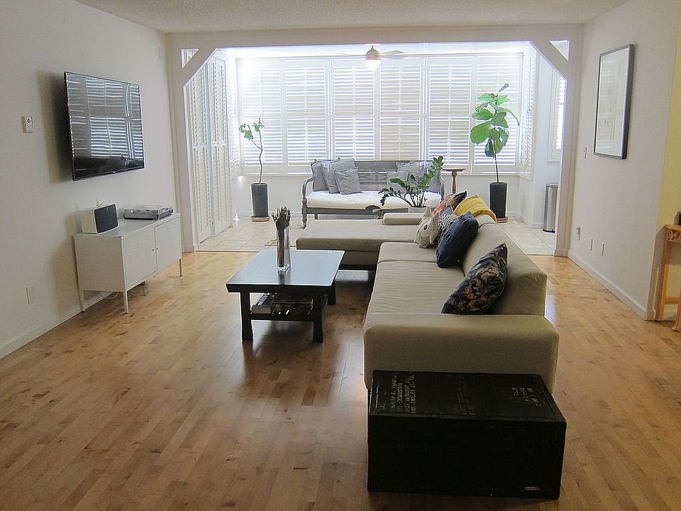 Marvelous and radiant, spacious 2BR/2BA, 1,500 sqft home in the stunning Briarcliff building w/ midcentury vibes & contemporary appeal. Entering the updated interior, you are greeted w/ hardwood floors, an open concept design, double-door storage closet w/ exorbitant space & tons of luminous natural light. Find a kitchen featuring SS appliances, white subway tile backsplash, built-in microwave, dishwasher, quartz countertops & farmhouse sink! Conveniently designed w/ a split-floor plan, each master bedroom is private for maximum comfort. One master bedroom has a walk-in closet w/ organizers & a detached full bathroom w/vanity & shower/tub combo! The second master bedroom includes two closets (one w/ organizers) & an attached en suite w/ a walk-in shower. Venture to the nearby nature path, beach, bike path & downtown PDR or enjoy the community amenities, featuring a heated community pool, private courtyard, sauna, exercise room, social room w/billiard & ping pong tables & small library!