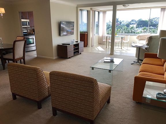 Enjoy beautiful views from every room! Sunsets, trees, hillside, blue skies. This bright, spacious condo in Playa Del Rey is located just a few blocks from the ocean in a recently renovated, mid-century modern complex. Updated kitchen and bathrooms, two bedrooms with ensuite bathrooms, large living room with adjoining sunroom and dining room. Two car parking in secure parking garage. Pool in the courtyard. Furnished or unfurnished. Tenant pays for electric, cable, internet. Landlord pays for water. Pets allowed with additional pet deposit.