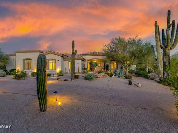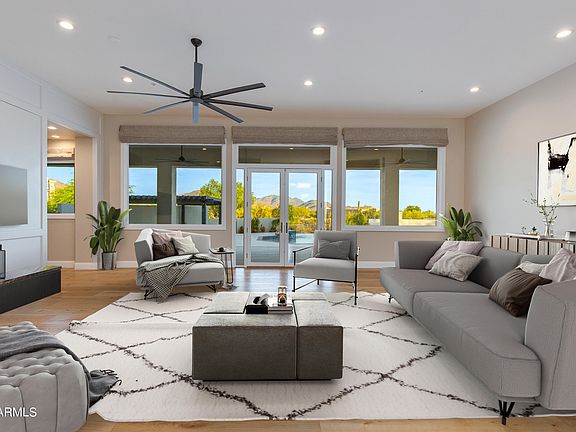 Stunning remodeled Scottsdale home with breathtaking mountain views! This exquisite single-level home located on an acre corner lot offers a split floor plan with 5 ensuite bedrooms, designer upgrades, & incredible outdoor spaces that capture the essence of Arizona living. The kitchen has been beautifully remodeled with quartz countertops & custom cabinetry. The spacious primary suite offers direct access to a private patio with heated spa & outdoor shower. Enjoy stunning desert mountain views from your expansive backyard featuring a heated pool, covered sitting area, a fire pit, & a large turf area with putting green. Close proximity to top-rated schools, fine dining, shopping, & world-class golf courses.