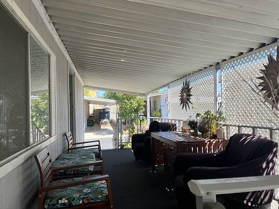 Beautiful Golden West Manufactured in a desirable All Age Community in Santee! This charming home has many upgrades. Warm and spacious living room has a custom built-in aquarium, very relaxing. Dream kitchen includes newer lower cabinets, granite counters, cozy built-in breakfast nook and newer appliances that convey. Master BR has a walk-in closet, large Master BA includes dual sinks and a step-in shower. Newer rich looking laminate flooring throughout, fresh interior/exterior paint, newer roof (2006), water heater 2020 and furnace 2021. Enjoy relaxing on the deck, rebuilt just a year ago. Close to schools, shopping, freeway and a park next door! Won't last, call today! (LAD2004)