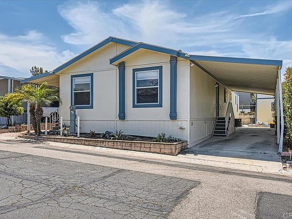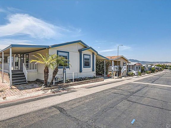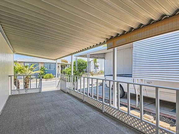 This 3 bedroom, 2 bath manufacture home is gorgeous inside. New flooring was put in before current owner, new paint, re-done kitchen, beautiful counter tops, open floor plan, built in shelves, large patio deck, nice sized side yard and car port. This home has been very well kept up and is move in ready! In the side yard, there is a fully mature lemon tree producing very large juicy lemons. How about planting some more wonderful trees or a garden? This has everything you need in a All AGE PARK and it is just minutes away from all the amenities in the heart of Santee. Summer time is coming. Bring your family and enjoy a nice swim in the pool! Space rent is $1,123 and includes water and trash.