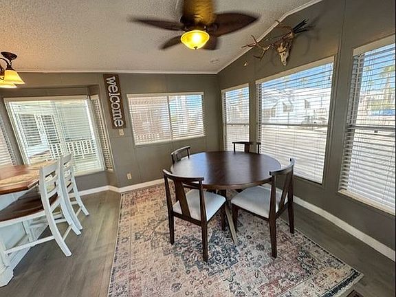 Welcome to the Voyager RV Resort, a 55+ age qualified, active and vibrant resort community. Here, you can find your dream home! This home is a beautifully renovated and updated 1992 Cavco Park Model Home for sale. This home is nearly better than new! It features newly constructed large Arizona Room, brand new carport with sturdy 2x4 wood construction, newly constructed roof with 2x4 trusses and beams, new wood siding, new dual pane windows and glass slider doors, and new composite decks in the front and rear of the home. There is additional storage under the deck. The home offers room to roam and has the perfect blend of modern amenities and timeless charm. Step inside to find an abundance of natural light, an open concept floor plan, and new wood plank themed laminate flooring throughout the home. The interior has recently been painted in beautiful earth tones. Ceiling fans and ceiling light fixtures are new. The spacious Galley Kitchen has a smooth top range, stainless steel dishwasher, and a new stainless-steel refrigerator. The Dining area has a wraparound China Hutch and a large Bay Window. The spacious bath features a custom, tiled walk-in shower with glass sliding Barn Doors, new vanity, and a new commode. The bedroom has plenty of storage with a large, mirrored closet, built-in chest of drawers, and upper cabinets. The large Arizona Room is filled with natural light. It also has beautiful wood laminate flooring, a large closet that houses the full sized, side by side washer and dryer. This room has access to the front and rear decks. The entire home is adorned with custom 2""Blinds. The exterior of the front windows has solar privacy screens. This home comes unfurnished except for the bar-height, 2 -seat dinette set. The home is extra clean and move-in ready. Conveniently located near shopping, dining and Interstate 10, you'll have everything you'll need just minutes away. Whether you are looking for relaxation or recreation, this vibrant resort community has it all. Call us today to schedule a tour of this home.