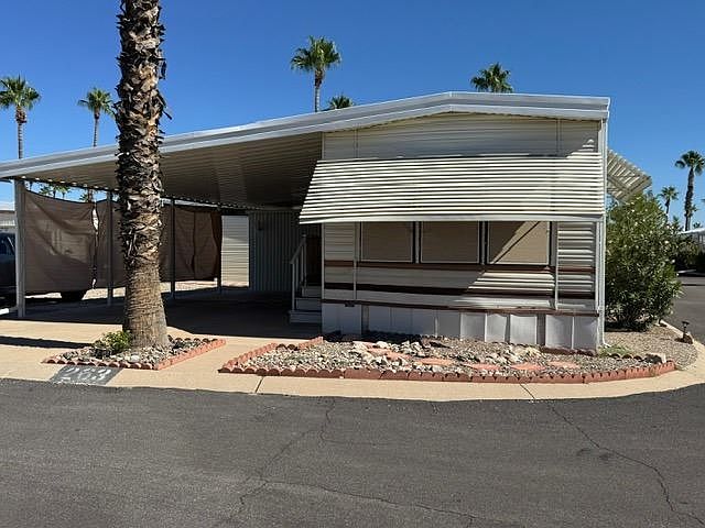 Welcome to the Voyager Resort, a 55+ age qualified active and vibrant resort community where you can find yourself in your dream home. We have an exceptionally clean, well-maintained 1985 Skyline Tahoe Park Model Home available for immediate occupancy. This home is larger than most park model homes measuring 12 x 37. This home features a spacious open floor plan with a U-shaped kitchen, bathroom with new commode and safety grab bars in the tub/ shower, and a spacious bedroom that offers plenty of built-in drawers, upper cabinets, and a large, mirrored closet. The spacious shed has a finished interior, has electricity and plumbing, and includes a stack washer & dryer. The rear yard has a covered patio with privacy louvers on the side and rear walls to create a private outdoor space. The home has new carport support posts and a privacy solar screen as well as the sliding glass door. This home includes the living room, dining room and bedroom furnishings to make this home turn-key ready. This home is priced well below comparable homes. It is priced to sell quickly giving buyers the flexibility to make updates to their own taste. This home has no sales tax. Residents also enjoy a wide range of amenities such as resort style pools, fitness center, golf course, tennis, pickleball, numerous social events, on-site Fat Willy's Bar & Grill, and so much more. Whether you are looking for relaxation or recreation, this vibrant community has it all. Call us today to schedule a tour of this home.