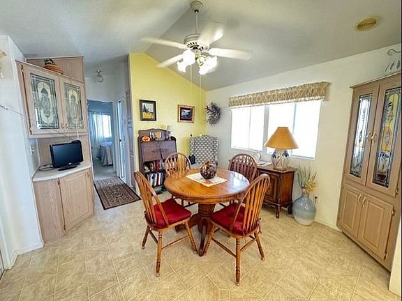 Welcome to the Voyager Resort, a 55+ age qualified active and vibrant resort community where you can find yourself in your dream home. We have a beautiful 1993 Fleetwood Park Model Home available. This home has room to roam! There is a spacious Arizona Room addition with a large utility room. The utility room is multi-use and features a laundry area with full size washer & dryer, office area, and a large walk-in closet. The elegant floor plan features the front of the house, open kitchen and dining area. This rare floor plan does not come on the market very often. The kitchen features stylish raised panel cabinets. The large bathroom is a pass-through plan that has access from the primary bedroom and hallway. It features a spacious corner shower / tub combination, corner vanity, and skylight. The bedroom has two large, mirrored closets and has built-in cabinets. The spacious Arizona Room has access to the front deck from a sliding glass door as well as access to the rear covered patio. The large front deck is screened in to enjoy the outdoors in private. The climate is controlled from a newer Goodman central HVAC system. The home will come partially furnished and ready for one's distinctive touch. Ask a Voyager Associate for a detailed list. There is no sales tax on this home. Residents also enjoy a wide range of amenities such as resort style pools, fitness center, golf course, tennis, pickleball, numerous social events, on-site Fat Willy's Bar & Grill, and so much more. Whether you are looking for relaxation or recreation, this vibrant community has it all. Call us today to schedule a tour of this home.
