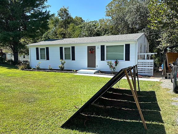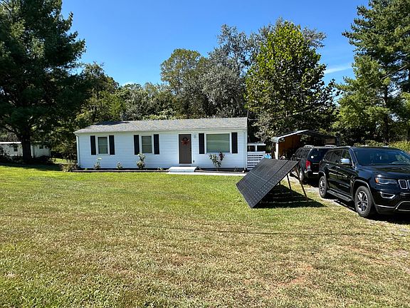 Cozy three bedroom ranch, ready for new owners. Roof was installed 2014, along with the siding and shutters. The heat pump was installed 2015, but was not used until recently, works great. Current owner has recently replaced living room and bedroom flooring, installed new pressure tank with all new piping under the home, new detached 12x20 carport and new side door. Gutters have been freshly cleaned. The house has a small wall heater powered by a propane tank, gas range is also powered by the propane tanks. The house has high speed internet through Zitel. Solar panels and all mechanics associated with them, window mini split, and wood stove do not convey with the home.