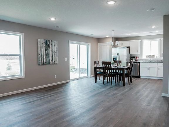 This beautiful two story slab home welcomes you with a modern design and quiet front porch area. The main floor features an open design with luxury vinyl plank flooring throughout the foyer, combined kitchen/dining room and living room. A modern electric fireplace adds just the right ambience for cozy evenings and the sleek quartz countertops, cheerful white cabinetry and stainless steel appliances make everyday tasks more enjoyable. Enjoy entertaining and grilling on the cement patio that walks out from the kitchen. The loft upstairs is equally perfect as an office, a playroom, or an extra hangout area. The owner’s suite and 2 additional bedrooms all feature walk in closets and the upstairs laundry room nearby is very convenient. This home is truly an incredible value and even includes sod and irrigation.