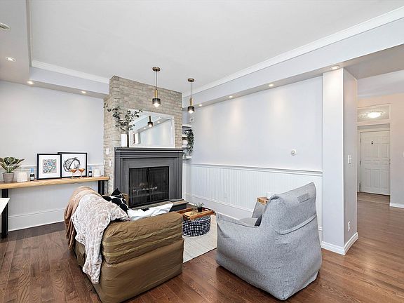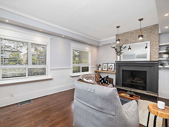 Corner lotMature treesWelcoming front porchWood-burning brick fireplaceWood floorsClassic white wainscottingUpdated eat-in kitchen