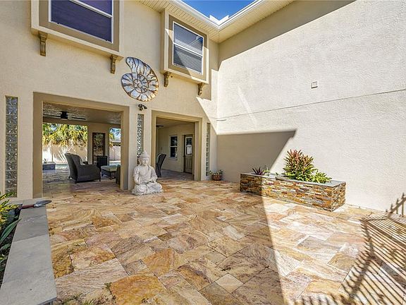 This is your perfect coastal living retreat that checks all the boxes! This outstanding, masterfully designed, custom-built 3-bedroom, 4-bath tri-level pool home with bonus room truly has it all. Located just one mile from the gorgeous, powdery white sands of Sunset Beach, you'll love living close to the water in the "Sunset Capital." Enjoy everything the area has to offer, parasailing, paddleboarding, windsurfing, Blind Pass Marina, Corey Avenue shops, rooftop bars, waterfront dining, and the beautiful beaches of Pass-A-Grille and St. Pete Beach, all just minutes away. Unwind in your own private retreat with a heated, sparkling pool and spa surrounded by lush tropical landscaping. The travertine-tiled courtyard is perfect for grilling or entertaining friends. You'll also have plenty of parking with an oversized two-car garage and a wraparound driveway. Step inside through the magnificent, light-filled front door to find a spacious and inviting home with soaring 11-foot ceilings, an open floor plan, and a large covered balcony. The custom kitchen impresses with granite countertops, custom cabinetry, a large island with seating, built-in oven and microwave, cooktop, and modern lighting. Beautiful coastal luxury vinyl flooring flows throughout the second-floor living area and bedroom, creating a warm and stylish space. Outdoor balconies on both the second and third floors offer even more opportunities to entertain or simply enjoy the gentle coastal breeze. The third-floor primary suite features bamboo flooring, sliding glass doors to a private balcony, and a luxurious ensuite bath with dual vanities, a walk-in shower, a jacuzzi tub, and a huge walk-in closet. The third bedroom also offers privacy with its own ensuite bath featuring a whirlpool tub/shower combination, a private porch with distant Intracoastal views, and an extra-large dual closet. A versatile bonus room on the first floor, overlooking the pool, can serve as an additional bedroom, game room, office, or workout room, and includes a full bath with walk-in shower. This home truly blends comfort, space, and the best of coastal living, all in one perfect location!