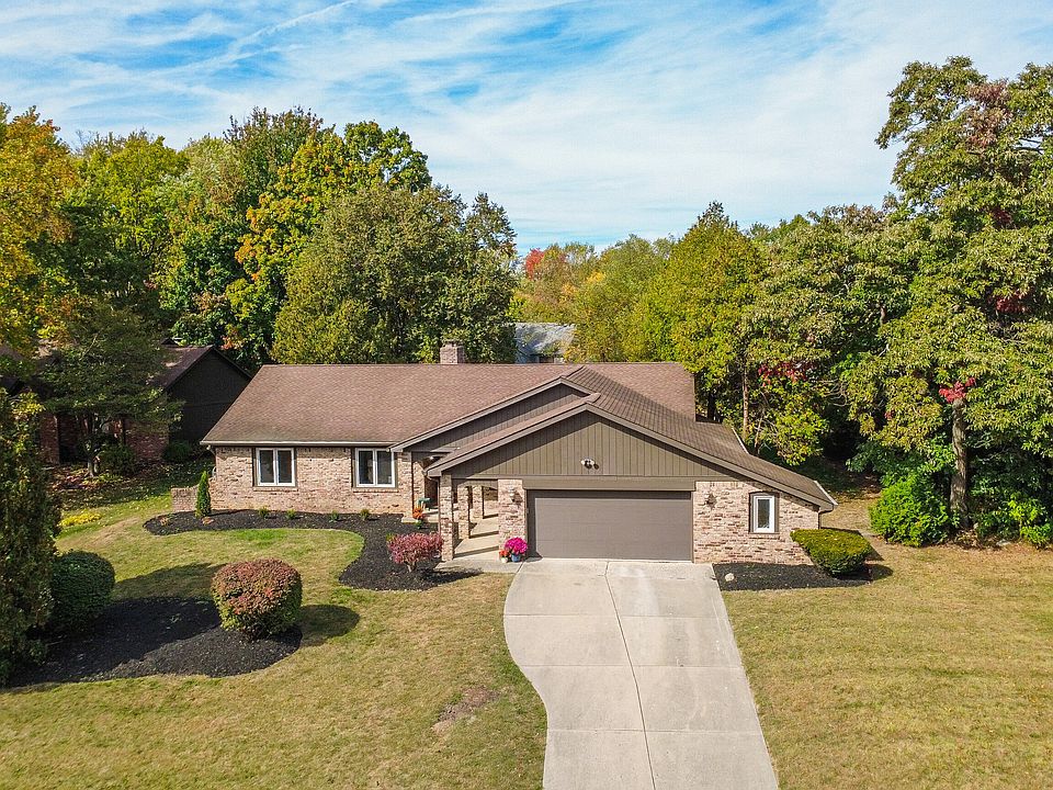 Welcome to this exquisitely reimagined ranch home with a finished lower level, perfectly situated on a quiet cul-de-sac near Geist Reservoir in the highly sought-after Beam Reach at Geist Harbors neighborhood. Thoughtfully renovated from top to bottom, this residence beautifully blends modern sophistication with timeless charm, offering an ideal balance of comfort, style, and functionality. Inside, discover luxury vinyl plank flooring, fresh neutral paint, and designer lighting throughout. The bright and inviting kitchen impresses with sleek quartz countertops, brand-new stainless steel appliances, and ample cabinetry, creating the perfect space for both everyday living and entertaining. Each of the four beautifully remodeled bathrooms features new vanities, mirrors, lighting, and fixtures, bringing a cohesive, contemporary feel to every space. The finished lower level serves as a true retreat, complete with a marble countertop wet bar, cozy fireplace, and private bonus room with a half bath, perfect for hosting guests, movie nights, or creating a home gym or office. Outside, the freshly painted exterior and mature landscaping enhance the home's curb appeal, all nestled within a peaceful setting close to parks, biking trails, and the vibrant Geist area. Experience the best of modern living in this prime northeast Indianapolis location, where every detail has been carefully curated to make you feel right at home.