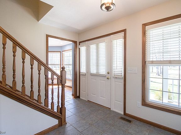 STOP LOOKING… THIS IS IT! You’ll absolutely fall in love with this beautiful 4 Bedroom, 3 Bath Colonial on 2 acres in Chardon that has been tastefully updated in modern colors and timeless finishes. The spacious Foyer welcomes you into this magnificent home accented throughout with classic oak trim and provides lots of natural sunlight in every room! The entryway has a pretty Powder Room and leads into the Formal Dining Room which boasts handsome hardwood floors. The striking Eat-in Kitchen features gorgeous gray cabinetry, quartz countertops, a center island, built-in corner cabinets, subway tile backsplash, recessed lighting, large pantry, ceramic tile flooring and newer stainless steel (2022) appliances, which remain. Adjacent to the Kitchen is the Family Room accented by a floor to ceiling stone wood burning fireplace and handsome hardwood flooring. A first floor Laundry/Mud Room with newer washer & dryer (2022) completes the main floor. Upstairs you will find 4 Bedrooms and 2 ta