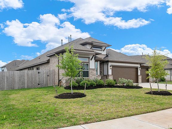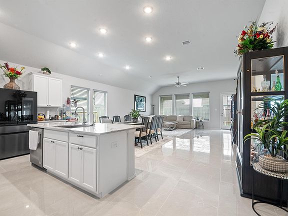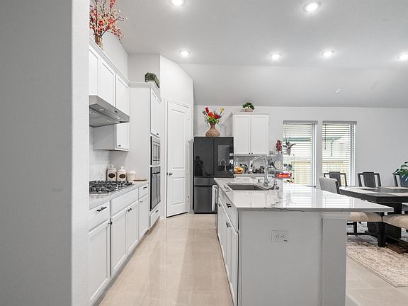 This spacious single-story home has 4 bedrooms and 3 bathrooms. You enter and are welcomed with an entrance with an elegant tray ceiling that leads to the contemporary, practical kitchen. The kitchen highlights a big island with beautiful granite countertops, offering plenty of room for cooking and relaxed dining. It looks out onto the open-concept dining area and family room. The primary bedroom, with ample space, is located at the back of the home for privacy and includes a separate tub and shower with sinks. The covered patio area is the perfect space for hosting gatherings and entertaining loved ones.