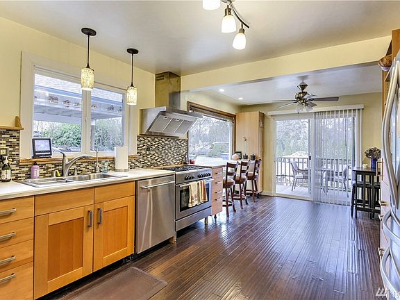 Hard to find! Large home with ADU in a great location! This home has it all: Newly remodeled, open kitchen, large corner lot, garage with heated shop area, mother-in-law suite, family room, wet bar, covered parking for 5 with room for more. Home has 2 bedrooms on the main level, one with extra office space. 2 more bedrooms & bathroom downstairs. Updated electrical, sewer, and water line. Hardwood & laminate floor throughout, on demand hot water. Still more on the list. Make sure you tour today!