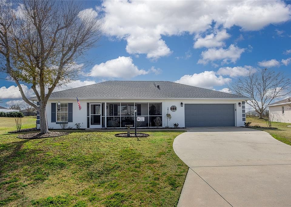 COMPLETELY RENOVATED custom-built Rose model by Triple Crown on large in 55+ Marion Landing Community. 3/2 plus an office/den, screened front porch, large open patio on an oversized lot with an empty, county-owned lot behind you. Entire house top to bottom has been tastefully remodeled with custom cherry cabinets in kitchen and baths w/soft close drawers & quartz countertops, wood-look tile throughout the home (NO CARPET), new roof in 2021 w/gutters & lightning rods, freshly painted inside and out. Updated plumbing and new fixtures. This home has tall ceilings in the living area, has a lot of natural light and updated wood-look blinds. Pocket door gives privacy to close off 2 guest bedrooms and guest bathroom. 2-car attached garage with extra work/storage area and laundry. Outside there is an irrigation system, preventive termite protection, orange trees & a large patio pad for your table, grill and own hot tub (sold separately)! Low HOA ($145/mo.) includes trash, initial water and sewer as well as the following amenities: clubhouse, fitness center, pool/spa, tennis courts, shuffleboard and bocce courts, library, craft room, billiards room and 8-lane bowling alley!! There is a community storage area for your boats and RV's. Golf carts are permitted to relax and unwind around this large neighborhood and soak up the famous Florida sunshine! This home is conveniently located near I-75, shopping and restaurants and the World Equestrian Center and a quick drive to Gainesville or Orlando.