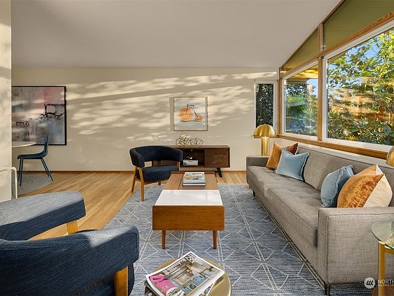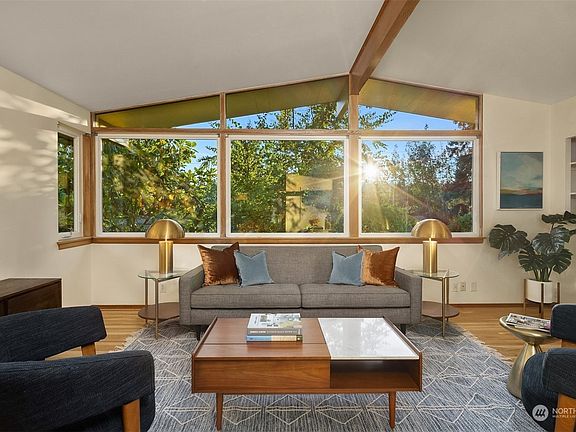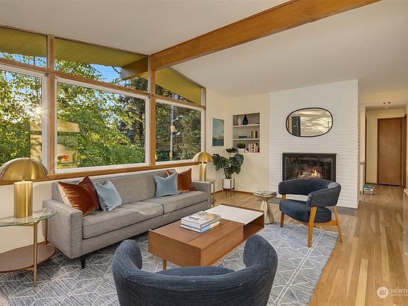 Stunning outdoor spaces highlight this classic mid-century with contemporary updates. Towering pines rise over the residential Wedgwood street + lush plantings fill the home’s yard. Inside, natural light warms the open-concept layout with dramatic accents provided by vaulted ceilings + oversized windows. Brick fireplace + refinished hardwoods add style. Dining room opens to backyard for expanded entertaining potential. Modern kitchen boasts stainless appliances and pantry. Two bedrooms + spacious full bath on main level. Bright lower level includes great room, 3rd bedroom + bonus room/ home office. Serene backyard oasis features wonderful patio surrounded by mature landscaping. Attached garage with storage + room for workshop.