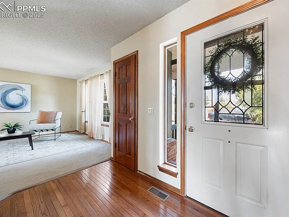 Welcome to your dream home in Gatehouse Village at Briargate—a stunning 5-bedroom, 4-bathroom home offering breathtaking, panoramic views from Monument Hill to the Spanish Peaks, with Pikes Peak as the centerpiece—a sight that never gets old! This home boasts rich, vibrant woodwork and plush high-quality carpeting throughout. The spacious and inviting layout includes a cozy wood burning fireplace in the family room, a charming breakfast nook, a formal dining room, and a versatile walk-out basement—ideal for a game room, home theater, or extra living space. Large sliding-glass doors on all 3 levels provide abundant natural light, passive winter heating, and cool summer breezes, while the Southwest backyard exposure ensures the perfect environment for your plants. Step outside to your serene backyard oasis and soak up natures beauty from all 3 levels: 600 sq ft patio from the walkout basement, 450 sq ft deck from the main level, and private 48 sq ft balcony from the 2nd floor master bedroom. The mature landscaping is a gardener’s paradise, featuring 2 grand Belgian pines in the front, Aspen stands in the back, and vibrant flowering bushes and ground cover throughout. A new Class 4 Impact Resistant roof and gutters offer peace of mind, while the 3-car garage provides plenty of room for vehicles and storage. Located just minutes from scenic trails, parks, top-rated gyms, excellent shopping, hospitals, Powers Blvd, I-25, and the Air Force Academy, this home offers the perfect combination of peaceful seclusion and convenient access to all the amenities you need. Plus, with top-rated K-12 District 20 schools just a short walk away, everything you need is right at your doorstep. Fall in love with this rare gem and live the Colorado lifestyle to its fullest!