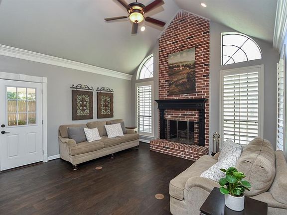 Beautiful, red brick, two-story home features large master bedroom and en-suite, hardwood floors, brick fireplace and beautiful study. Gracious open concept living with a large den, kitchen, breakfast and pull-up seating bar. Large formal dining room. Floor to ceiling windows; the house is full of beautiful natural light. Large upstairs game room, large backyard with pool, plenty of storage, walk-in closets, great community pools, close to shopping and so many more amenities.