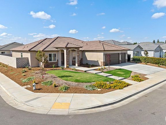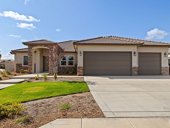 Snow Creek New Construction On a Corner Lot! This beautiful home features 4 bedrooms, 2.5 bathrooms, a split wing floor plan with 3 car garage. Large kitchen includes a peninsula island, farmhouse sink, stainless steel appliances, double ovens, pantry, and quartz countertops throughout. Luxury Vinyl flooring in living areas. Luxurious Primary suite with a separate tub and shower, dual sinks, and 2 walk-in closets. Laundry sink and cabinets. White cabinets throughout, fireplace, stone accents on exterior, sliding glass door which leads to the large covered patio and block wall surround. All of this on approx. 10,890 sqft lot with paid solar! Contact for more details!