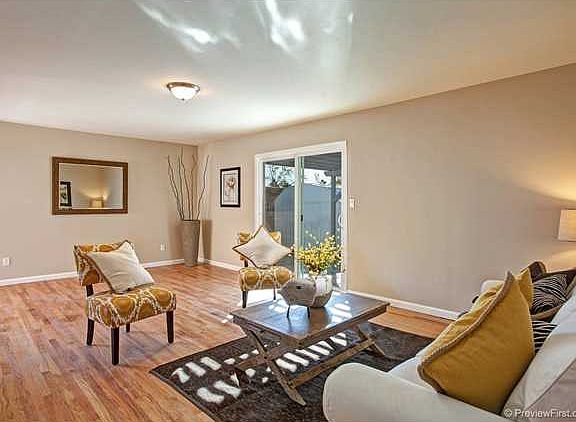 Corner lot, 1 story, remodeled & move in ready. Flat,wrap around corner lot. New interior & exterior paint. Stunning refinished wood floors. Granite counters, stainless steel range,oven, dishwasher, microwave, sink. New heater and AC! New patio overhang. Newer rear fence. Beautifully tiled kitchen & bathrooms. Painted patio cement, garage floor & walls. Finished garage with ample storage. Walk to stores & shopping center!!Centrally located.