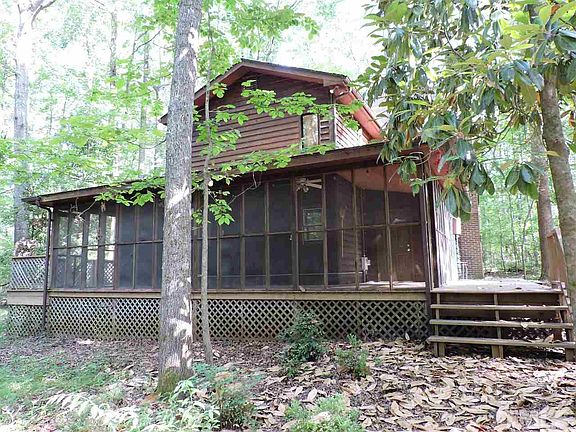 This is a secluded home with exceptional privacy on 11+ acres of mostly wooded land and streams perfect for outdoor living. Home is rustic with a porch or deck on every side. The screened porch is huge on the left. There are doors accessing decks on all other sides as well. Home has hardwood floors throughout. There is a wood stove at the fireplace in the living room, a tankless gas water heater, and new interior paint throughout. The east border of the property is Buffalo Creek. Come check it out today.