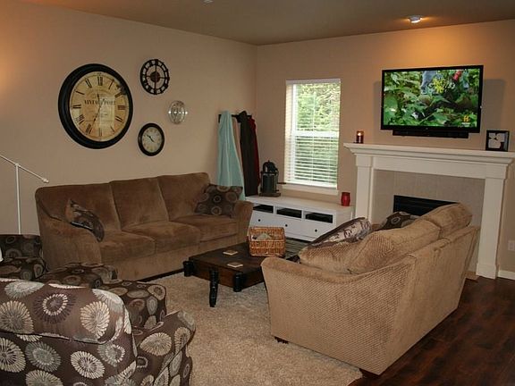Exceptional 4 Bedroom 2 bath with Bonus room backs to tranquil wooded Greenspace in Southridge High School District! Like new home with Great Room plan, and exquisite gourmet kitchen with huge island granite tile counters, stainless steel appliances & 5 burner gas cooktop! You will love all the Hand-scraped style Hardwood floors on the entire main level! Large Great Room with fireplace and door to cedar deck to enjoy you own back to nature setting! You will love the huge Dining Room with Hardwood floors, plenty of room for entertaining! Bonus room is perfect for theater room or workout room! Master Suite with view of woods, walk in closet and Master bath with Soaking Tub, glass shower, tile floors and wrap around counter with 2 sinks! 3 additional nice sized bedrooms with deco paint. Fenced easy care back yard, with steps from deck, gated areas to keep your pets where you want them. Nice area for possible trampoline or play structure.