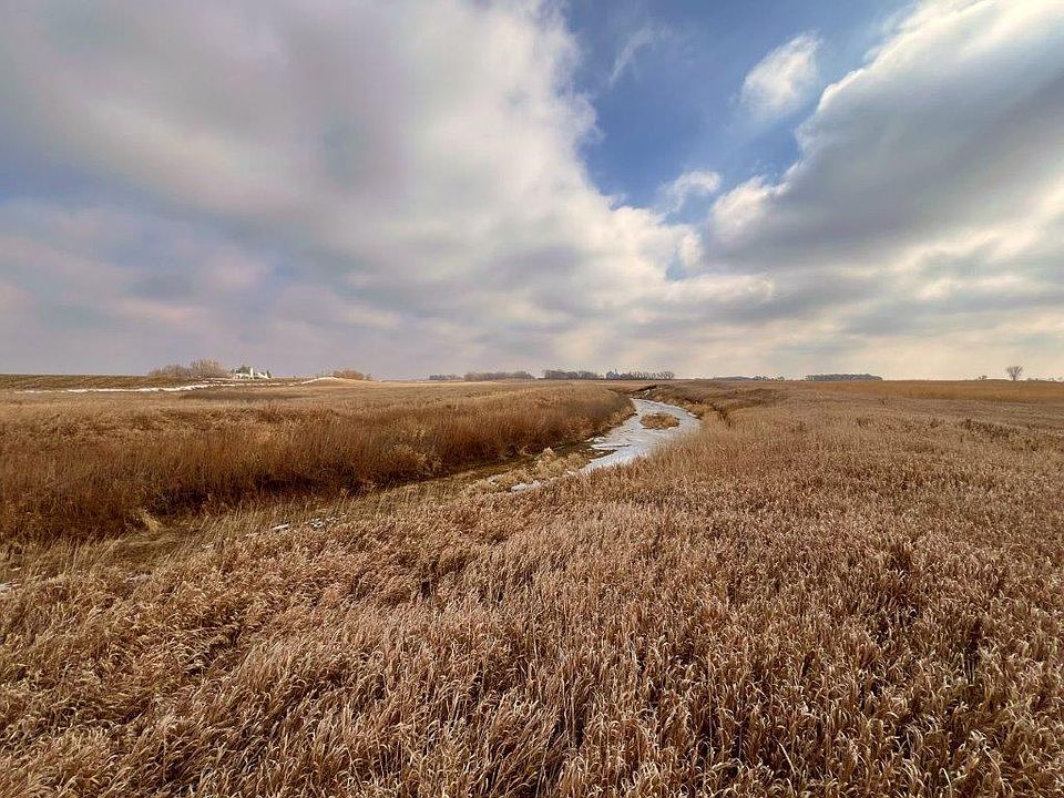 The property is enrolled in the state Reinvest in MN conservation easement. The habitat consists almost entirely of upland restored prairie grass and wildflowers, some brome pockets, the winter cover tree planting in the SE corner, and again the creek bisecting through the property. Approx. 46 acres lie to the south of the with the balance to the north. Both sides are easily accessible from the south and the east. Yes, there may be better deer hunting properties in the state, but there is evidence of trails through the prairie, and one never knows what may be traveling the creek.